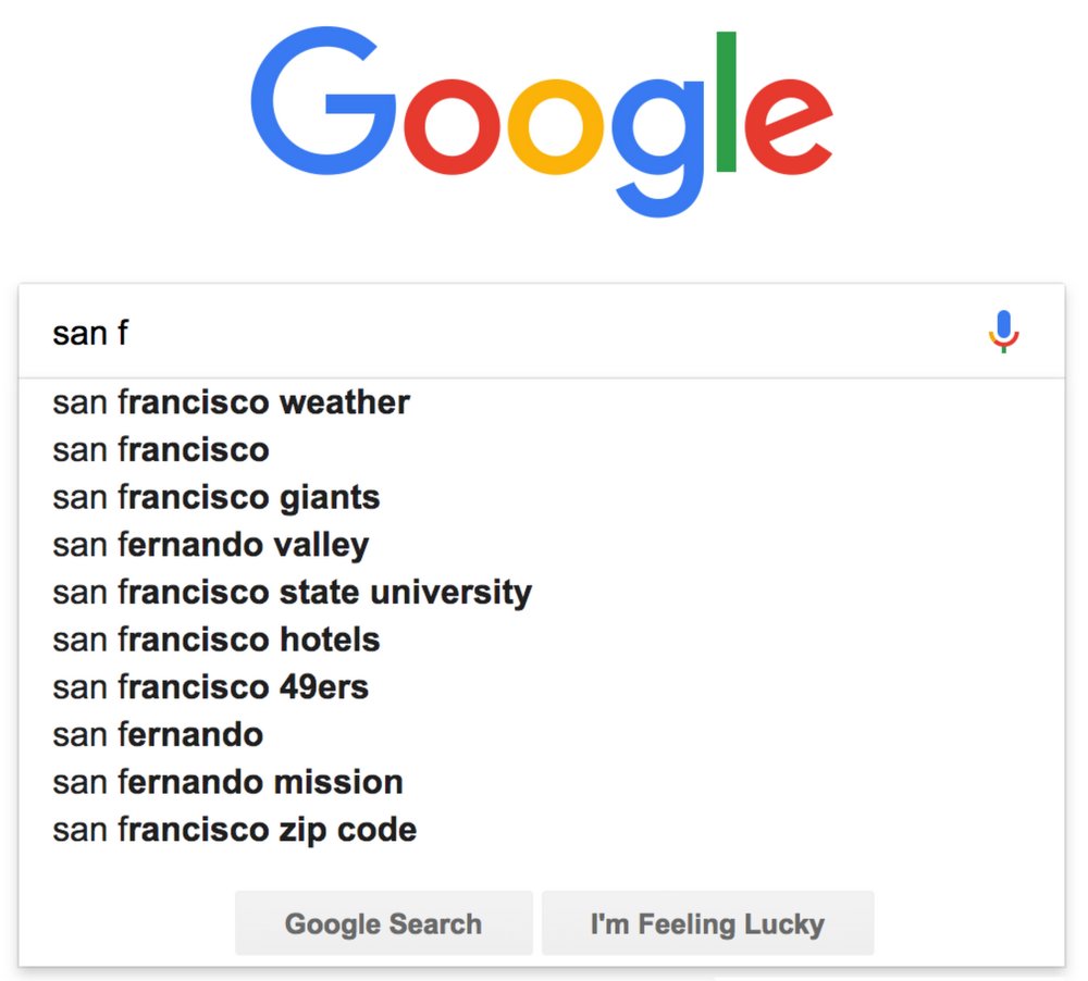 Autocomplete is intended to assist users in finishing a phrase they were planning, not to propose a search query, as in everybody's favourite feature of Google Search; "I'm feeling lucky." They make predictions by analyzing popular Google searches, including trending queries that may be relevant. Autocomplete can then swiftly update and respond to new search patterns and news headlines.