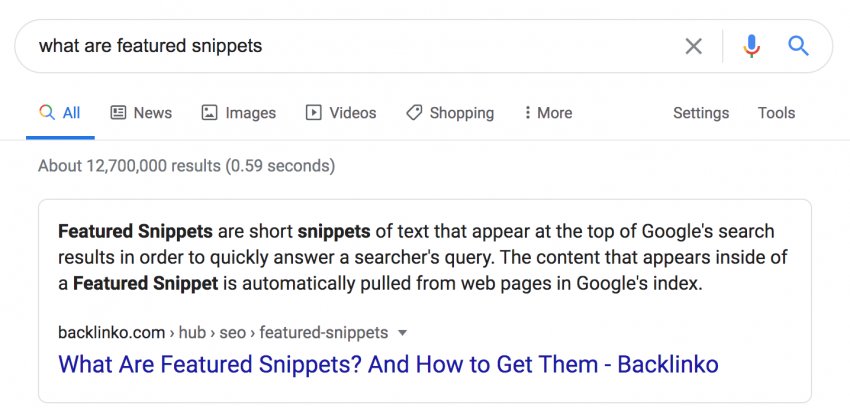 Featured snippets will be displayed by search engines based on the query and if it was informative, navigational, or transactional. Higher intent keywords, such as "purchase" and "shop," for instance, are more likely to create product gantries, whereas lower intent keywords (informational and navigational searches) are often more likely to yield featured snippets. The featured snippets that are presently showing up for your goal keywords should affect how you generate content and improve your website in general.